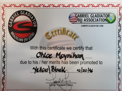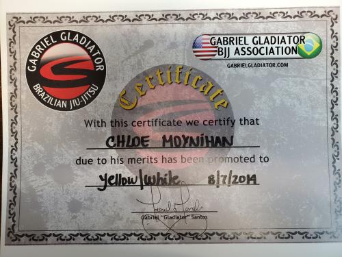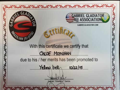 Yellow/White Belt 8/7/2014 Yellow Belt 10/22/2015 Yellow/Black Belt 10/20/2016