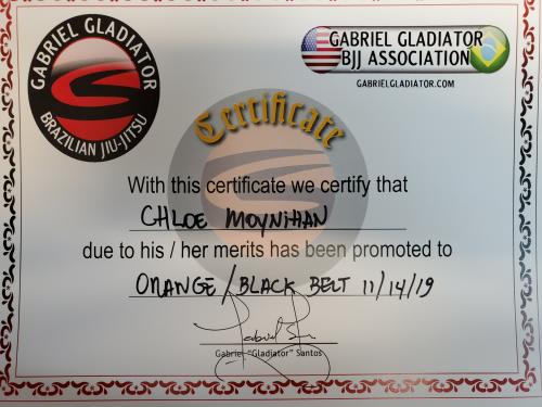 Orange/White Belt 10/26/2017 Orange Belt 11/01/2018 Orange/Black Belt 11/14/2019