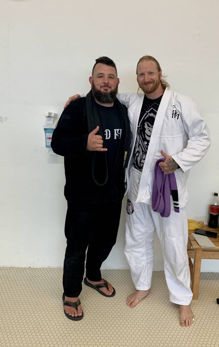 Proud to have been promoted to BJJ brown belt by my good friend and BJJ Blackbelt, Glenn Lambdin