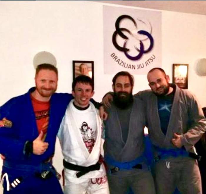 2017, Visiting my friend, BJJ Blackbelt Mark Picton and his Coach, Professor Paul Cole, at 5 rings grappling Mansfield/UK, with 2 of my training partners