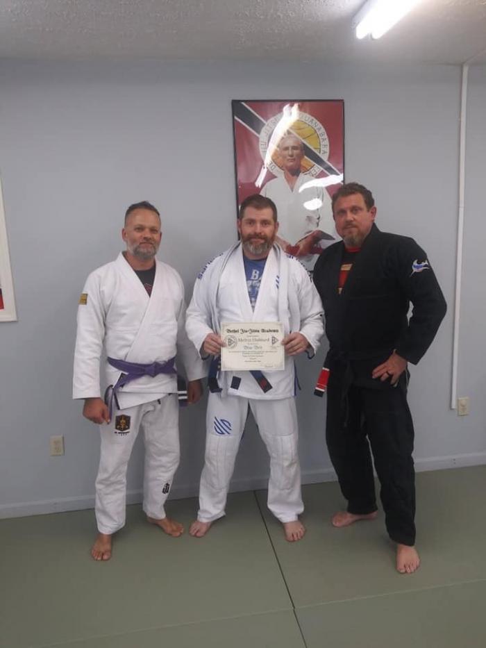 Started at Etown BJJ before changing to Bethel Jiu Jitsu, 4th stripe 4/6/2021