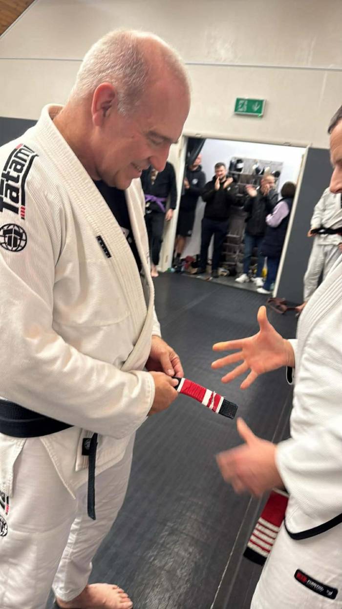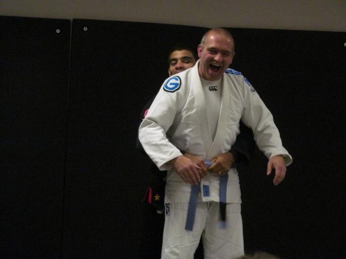 I had been training in Japanese Jiu Jitsu since 1984 - started self training with a couple of training partners from TJJ. Got awarded my Blue belt from Royce at a seminar we held in 2001 - Started again with Colin Howells at White belt in 2011