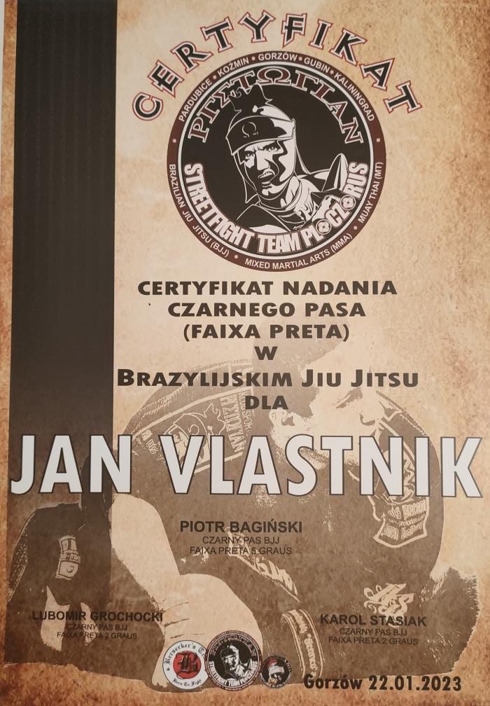 Lineage: Mitsuyo Maeda > Carlos Gracie > Helio Gracie > Rolls Gracie > Romero Cavalcanti > Rodrigo Medeiros > Felipe Costa > Piotr Bagiński > Lubomir Grochocki > Jakub Stejskal > Jan Vlastník