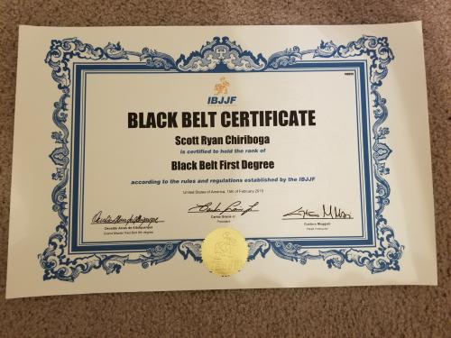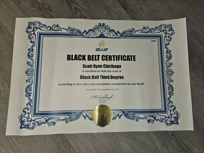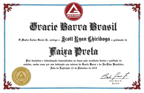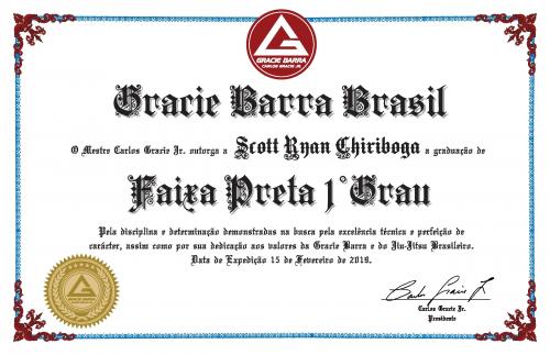 Scott Ryan Chiriboga's IBJJF Black Belt Thir Degree Rank Certificate
