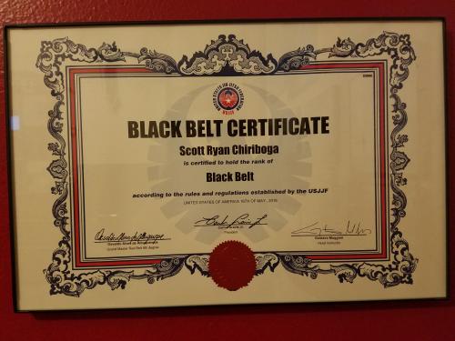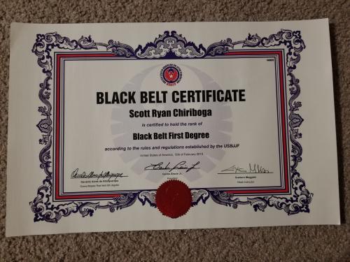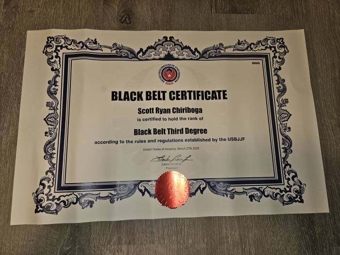 Scott Ryan Chiriboga's USBJJF Black belt Third Degree Rank Certificate