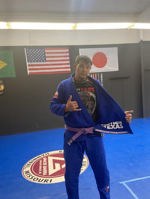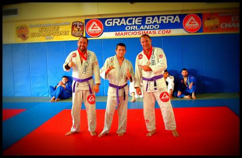 I was promoted to Purple Belt on December 14, 2012 by Gustavo Muggiati at Gracie Barra North Orlando.