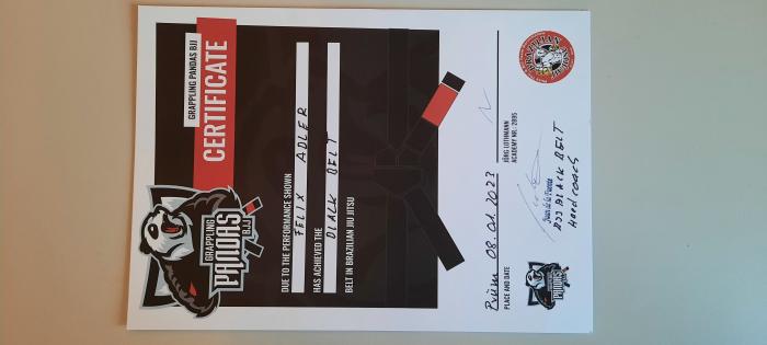 ![]() | Juan De La Fuente Briones Grappling Pandas Wittlich Wittlich, Germany Black belt 1st degree |