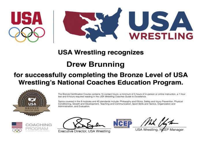 USA Wrestling Bronze Certification