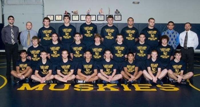 Lakeland College Wrestling Team Photo (top right when I had hair) - 2013