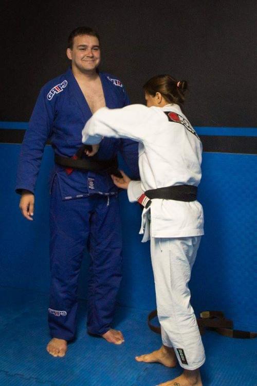 I was promoted to 1st Degree black belt in Gracie Jiu Jitsu by Steve Maxwell who is also one of my coaches that I have trained with for the last 8-9 years when he visits Sydney, Australia. Second photo attached with my coach Michelle Nicolini last year with my first degree obviously on my black belt and Michelle is both aware and approves.