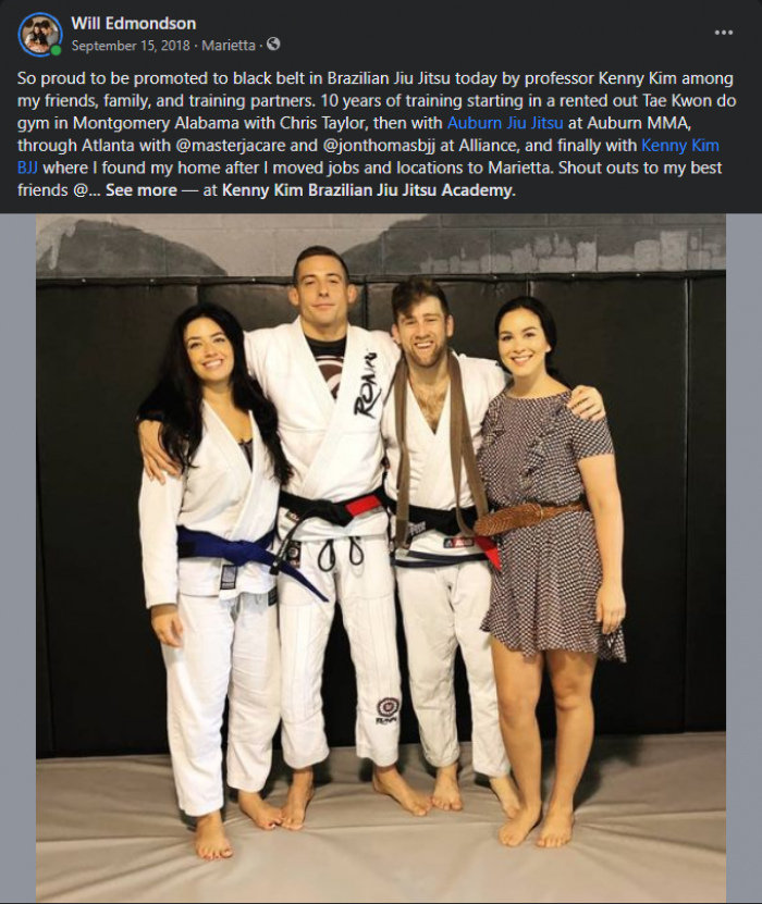 Promoted to Blue belt at Auburn MMA while attending school at Auburn University.