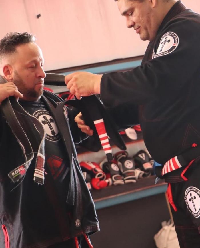 3rd degree jiu jitsu black belt under Marcos Cruz and 2nd degree Judo black belt under Héctor Lombard