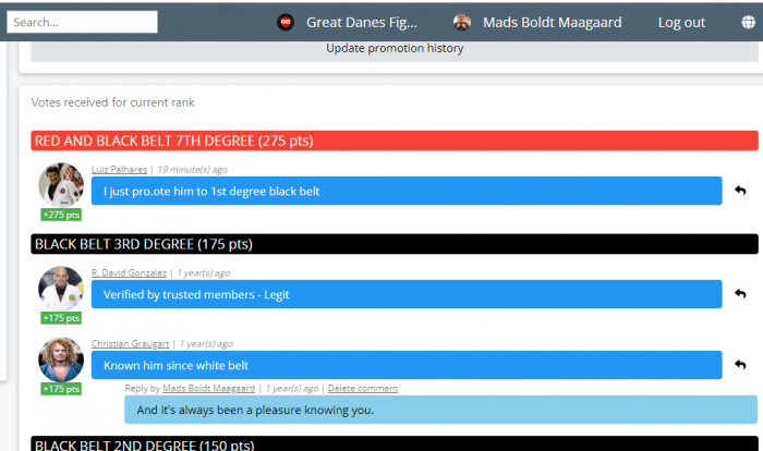 From my Instagram-post in regards to my promotion: "On the 20th of January 2026, I was blessed with the company of good friends and fellow Jiu-Jitsu-kas at the graduation ceremony at Jiu-Jitsu-kasJiu-Jitsu-kas Fighters6000 in Kolding. We were 12 blackbelts on the mat, and I have known them all since back in the day, black belts and almost all of them since they were white belts like me. We graded a lot of people that day, all of whom were very well deserved. I myself graded my black belt @martindissing_dk to his first dan stripe. In turn, my dearest and oldest fellow jiujitka and long-time close friend @davidrosmon honored and blessed me and my day by presenting me with my 3-dan black belt / Preta 3rd Grau in Brazilian Jiujitsu, long-time dan stripe, long-time long-time long-time. Or, long-timedan stripe, to long-time long-time, ginally I had received the diploma and blessing from my coach and professor, Luiz Palhares 8th Dan BJJ Blackbelt - @luizpalharesjiujitsu in the authum the 23th of october, but an trafic incident had postponed all chancen of properly tying the knot at the Danish National Grappling camp at Ollerup Højskole held by my dear friend, Thomas Kent @thomaskentdk - But now, what has been reality for som time is officially celebrated by those of my good friends and Jiujitsu-kas that could attend on the day, and the rest I will be high-fiving just as much the rest of my life as these guys, celebrating their wins and graduations and taking joy in their Jiujitsu journey as we take joy in our shared experiences of jiujitsu, life and all the silly things that are constantly happing to us and around us. You are the surfer, Jiujitsu is the Board; Jiujitsu; JiujitsuJiujitsuJiujitsujiujitsuJiujitsuJiujitsu Life is the Waves of the Ocean that is our world. Learn to surf, so you don't just have to swim or worse, drown, when the big waves come a'rolling! #WeAreAllOne #GenkiSudoQuote #NonDualisticZENJiujitsu ... End"